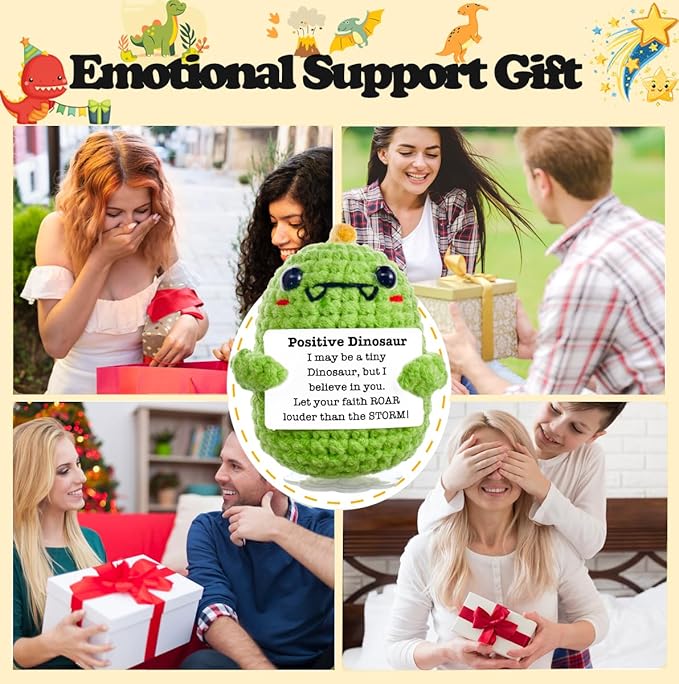 Funny Easter Basket Stuffers Positive Crochet Animals Dinosaur, Stress Relief Gifts for College Student Graduation Boyfriend Husband Women Birthday Desk Decor(Green Dinosaur)
