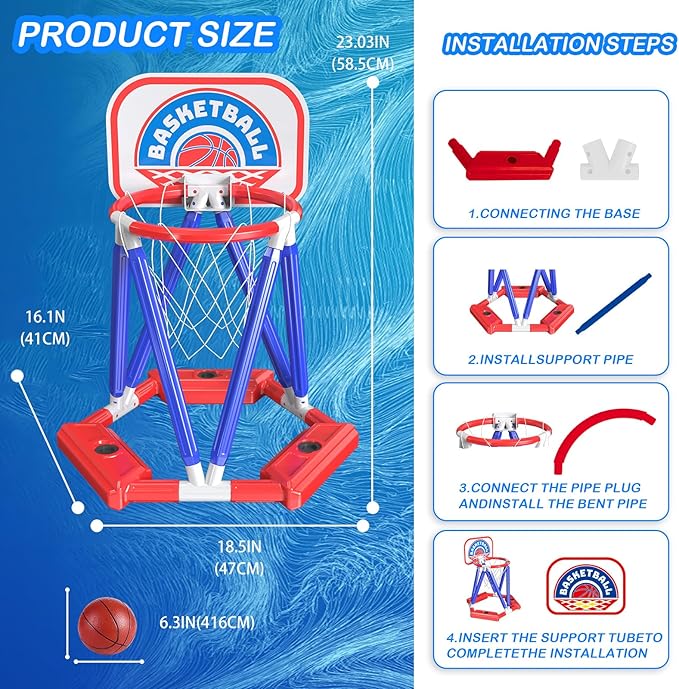 - DURABLE & STABLE DESIGN : Measuring 18.5x16.1x23.03 IN, our pool basketball hoop features a sturdy base that ensures stability on water; crafted with durable materials, it's built to last through countless games and season