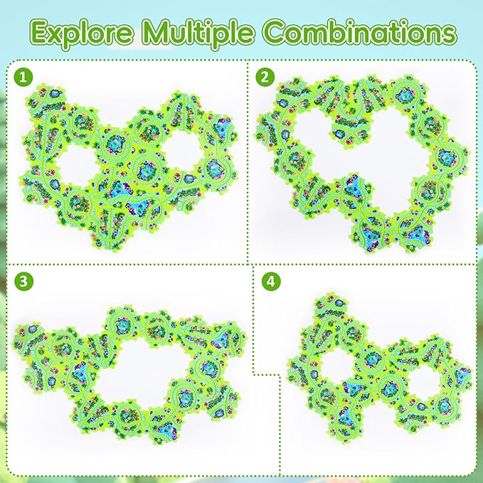- 【Exercise Kids Hands-on Ability】Assembling puzzle tracks is not just a hands-on activity,but also exercises kids logical reasoning and spatial thinking,allowing children to experience the fun of games while also enhancing their concentration,creativity and hand eye coordination skills