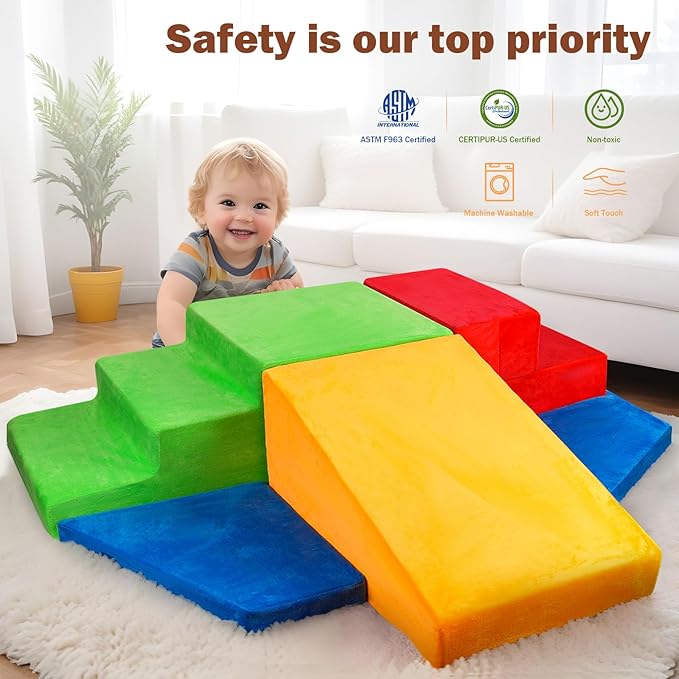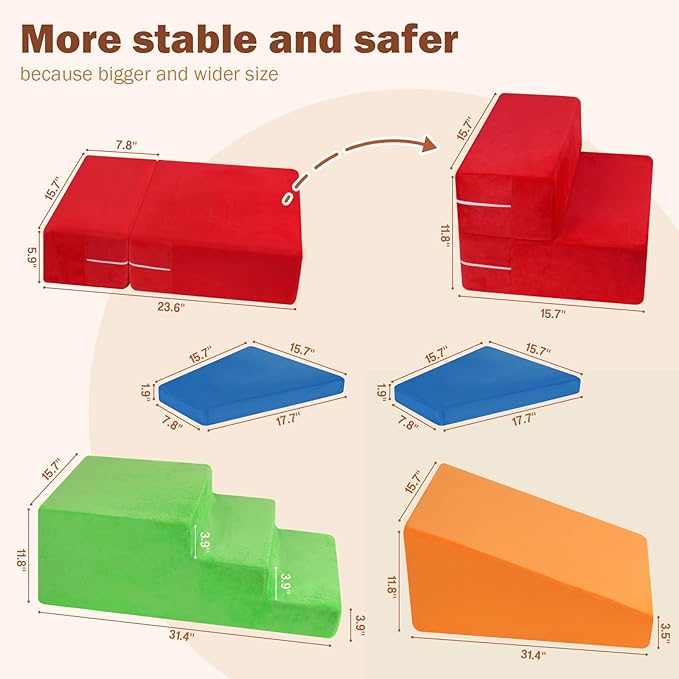 - DURABLE & SAFE CLIMBING TOYS FOR TODDLERS 1-3: Made with high-quality, skin-friendly fabric and premium 25D sponge, our foam climbing blocks for toddlers offer both comfort and durability. This soft play climbing set ensures toddlers can crawl, climb, and roll safely. Ideal as indoor climbing toys, it’s easy to clean and built to last—giving parents peace of mind.