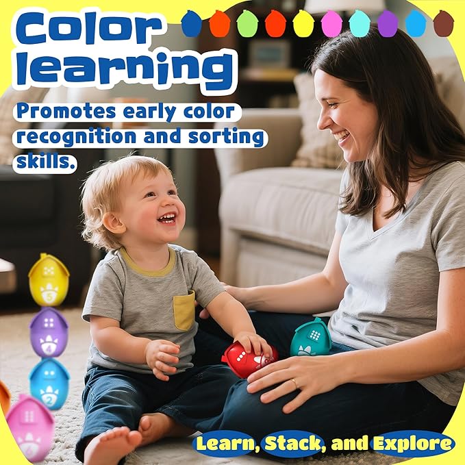- Enhance Fine Motor Skills: The stackable egg houses encourage hand-eye coordination as kids practice placing dinosaurs inside or outside the eggs. Perfect for developing dexterity through playful exploration.