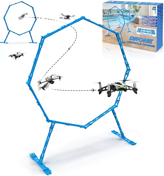 - Complete Obstacle Course for FPV Racing Excitement: Featuring 2 pack of easy-to-build obstacle hoops that enhance your flying skills and fun. Configure 2-loop racing routes for a challenging experience