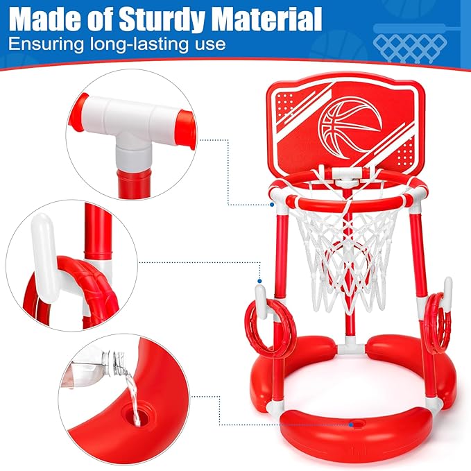 - Safe Material & Easy Assembly:Made from durable, non-toxic PE material, this mini pool basketball hoop wonât fade, crack, or release odorsâeven under the sun! Its triple-pillar base design ensures stable floating, while the water-fillable base adds extra weight to resist tipping in waves or windy conditions. Perfect for pool party games, it wonât leak during water basketball or ring toss, and stays like-new through repeated use!