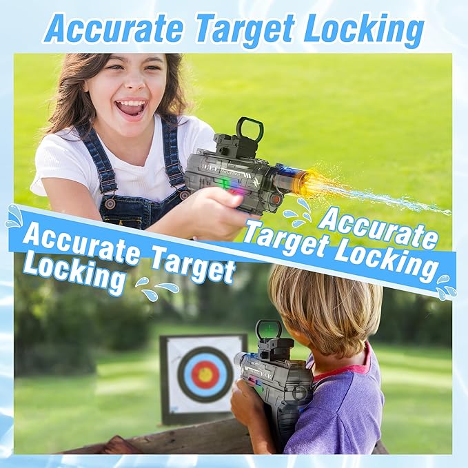 - Flame Light Effect & Precision Aiming: The built-in muzzle flame light and holographic sight add excitement and precision to every shot, making it the water guns for adults and kids alike.