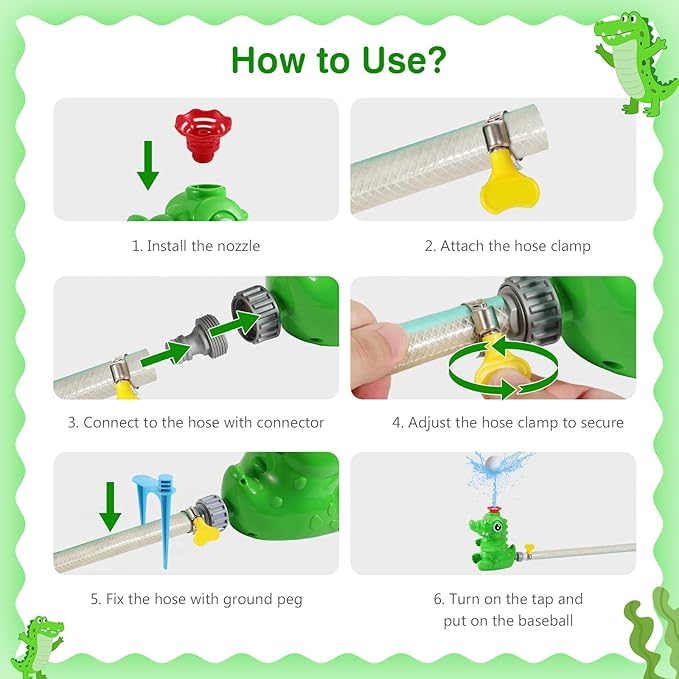 - Versatile Water Spray Toy: Designed with cute crocodile shapes and vibrant colours, these water toys are fun and highly attractive gifts for children. It can be used in the backyard, garden and lawn to water the flowers and provide cool water splashes for children and pets, bringing enjoyable parent-child interaction time.
