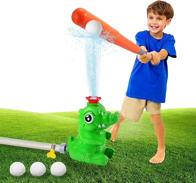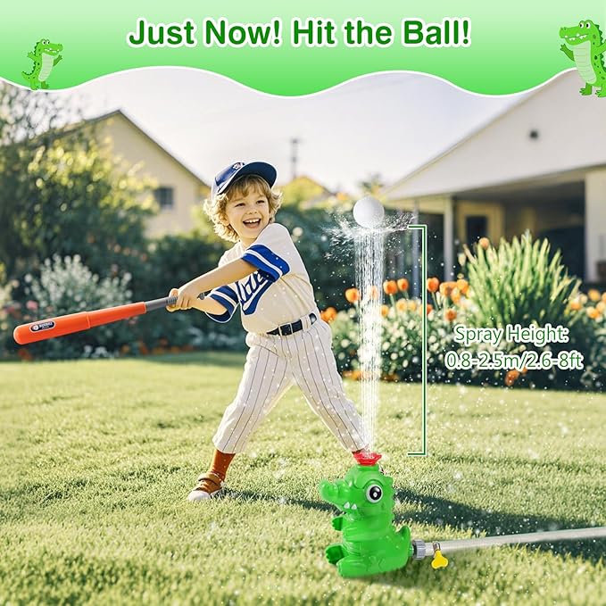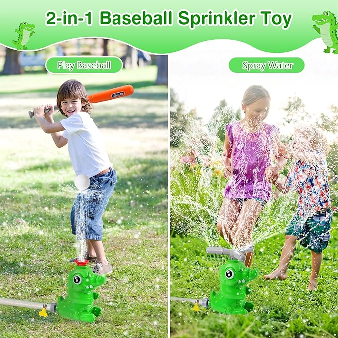 MoKo Water Sprinkler Baseball Toy for Kids Outdoor Play, 2 in 1 Baseball Water Games, 360° Rotatable Yard Sprayer Sprinkler, Toddler Outdoor Toys for Backyard Garden Lawn Pool, Green Crocodile