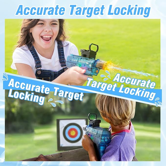 - Flame Light Effect & Precision Aiming: The built-in muzzle flame light and holographic sight add excitement and precision to every shot, making it the water guns for adults and kids alike.