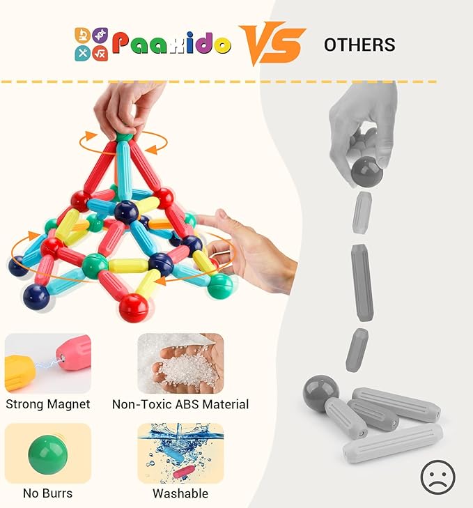 - VERSATILE BUILDING EXPERIENCE: Create endless possibilities with this expanded set of magnetic rods and balls. Perfect for both beginners and advanced builders, allowing children to progress from simple shapes to complex architectural structures. The stronger magnets ensure creations stay intact, reducing frustration and encouraging longer play sessions