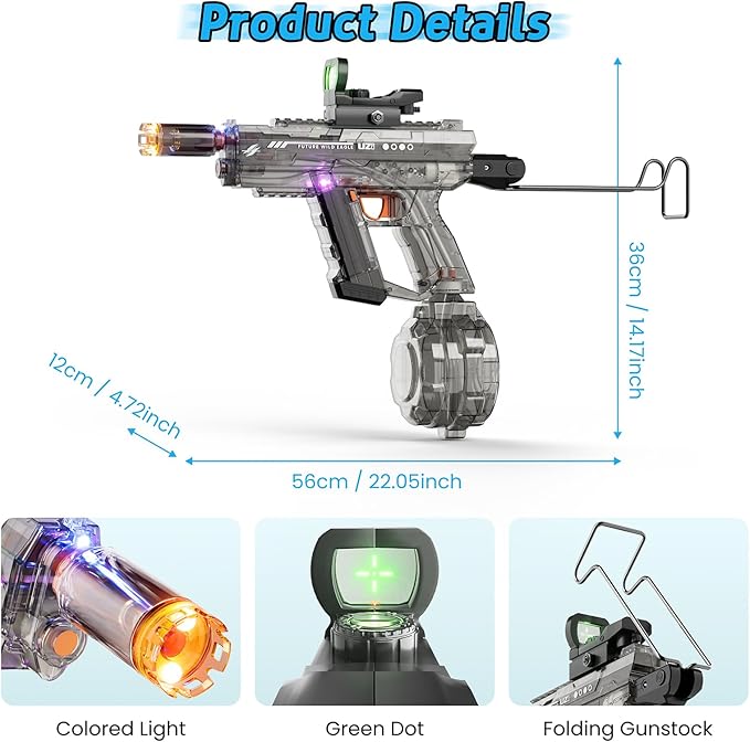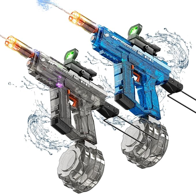 - 【Water Gun with Unmatched User Experience】This electric water gun comes with a scope and a foldable stock for precise targeting. It also features an automatic breech mechanism, simulated recoil with rifling sound effects, and an LED lighting silencer for a visually exciting and immersive play experience. These elements combine to enhance the excitement and fun of the battle.
