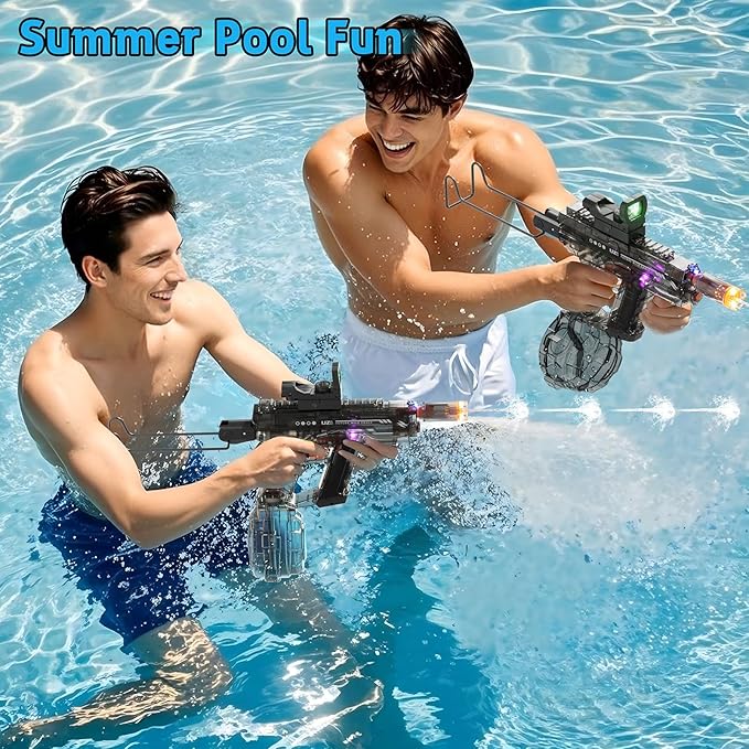 - 【Electric Water Gun with ABS Material】Our electric water gun is made from high-quality, safe, and environmentally friendly ABS materials. It boasts excellent waterproof capabilities, allowing you to engage in water battles with confidence.