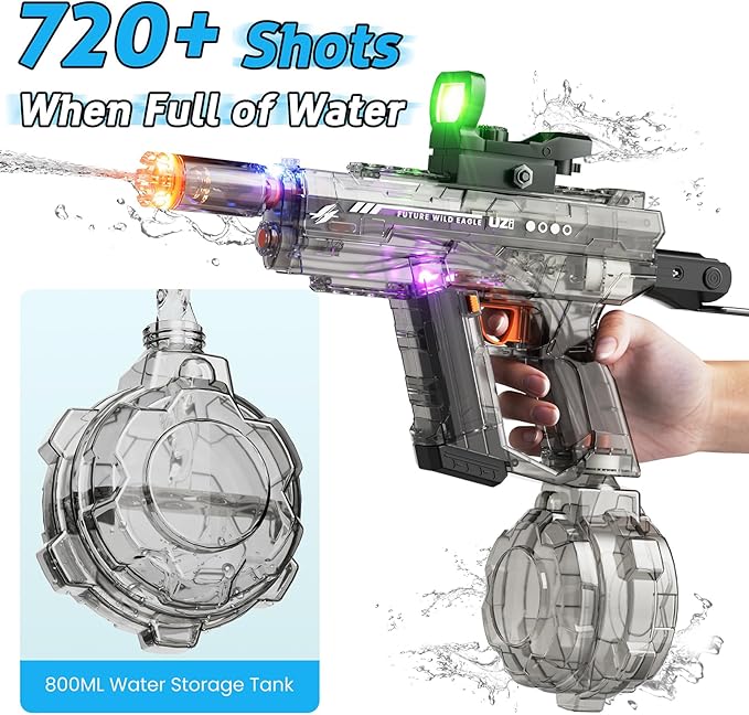 - 【Electric Water Gun with 800ML Water Storage Tank 】Our electric water gun comes with an 800ml high-capacity water tank, significantly larger than the typical 480-500ml tanks on the market. This allows you to store more water for extended, uninterrupted play. Additionally, our water gun features a built-in suction function, making it even more convenient and fun to use.
