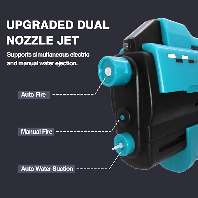 - 【Waterproof & Long-Lasting Battery】Built with a waterproof body and powered by a high-capacity battery, this electric water gun is durable and ensures long-lasting fun, even in wet conditions.