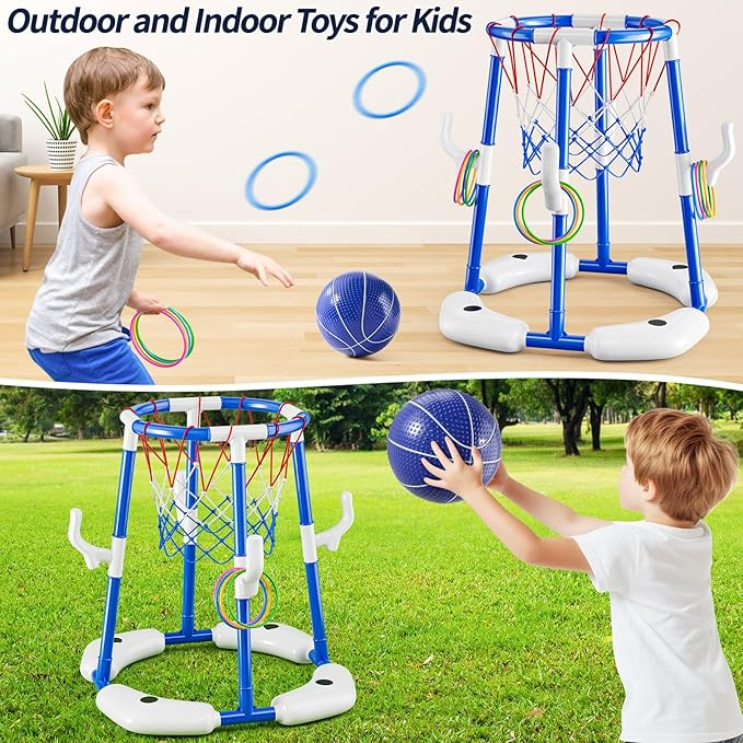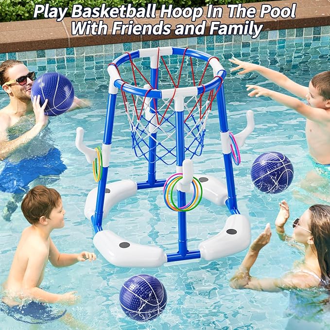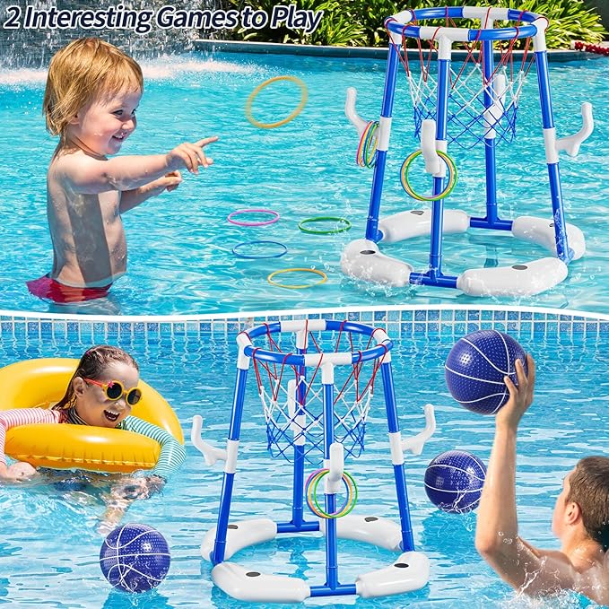 - Many Ways to Play: With the Pool accessories for kids, kids can play basketball game and tossing rings games indoor or outdoor. Water basketball games can develop kids' hand-eye coordination, social skills and hands-on ability