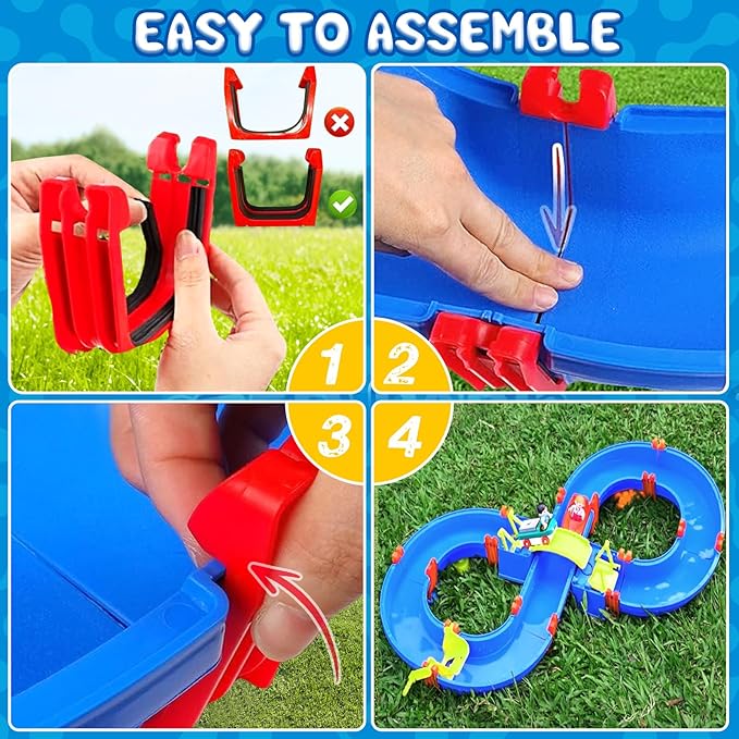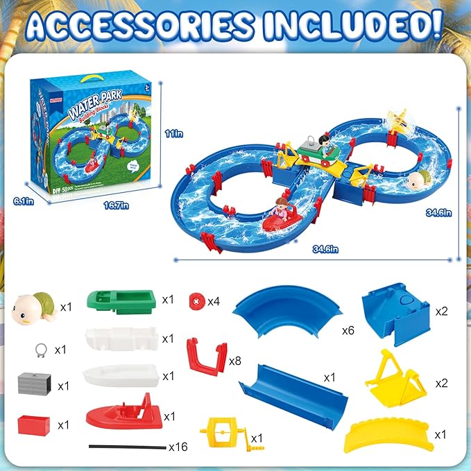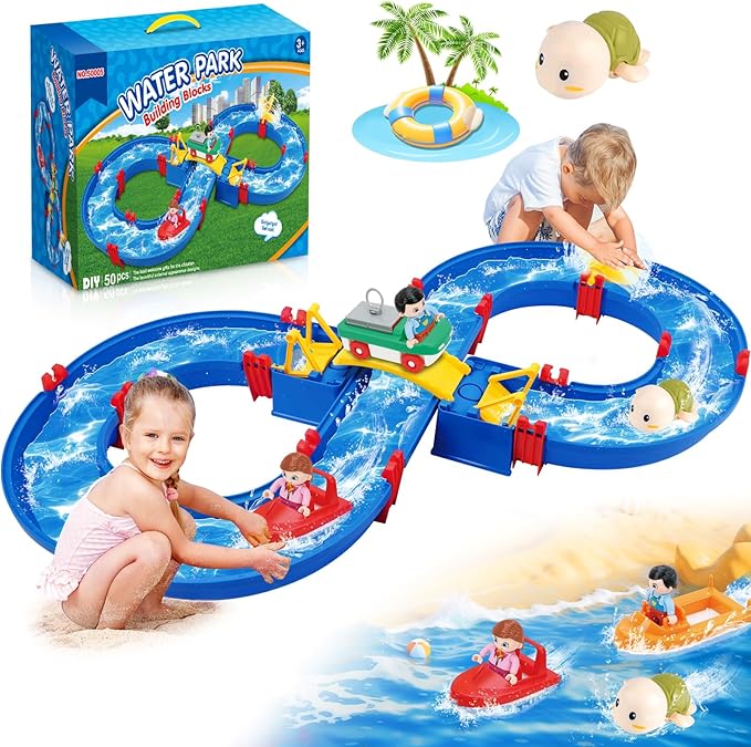 - 【Endless Fun Water Table】Spark hours of imaginative play with our action-packed water table! Designed for kids 3-8, this outdoor summer water toy features swimming turtle, water flow accelerator, bridge, 2 vehicles and 2 dolls. Watch little ones giggle while racing boats, perfect for solo adventures or group fun