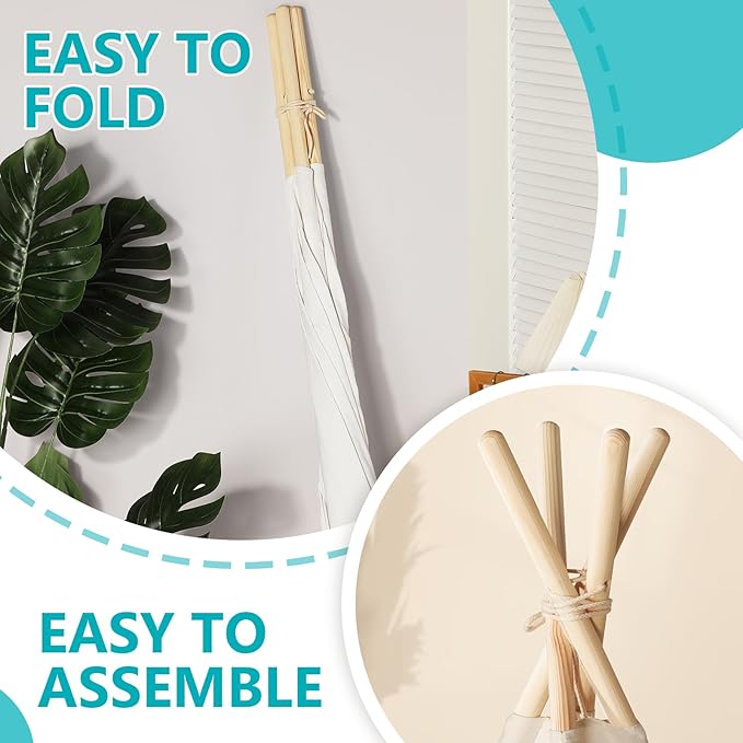 - Safe & High Quality: This tipi tent is made of 100% cotton. The teepee sticks are made of upgraded thickened solid wood poles for sturdiness. The toddler tent is built to the highest standards and is durable enough to ensure long-term use