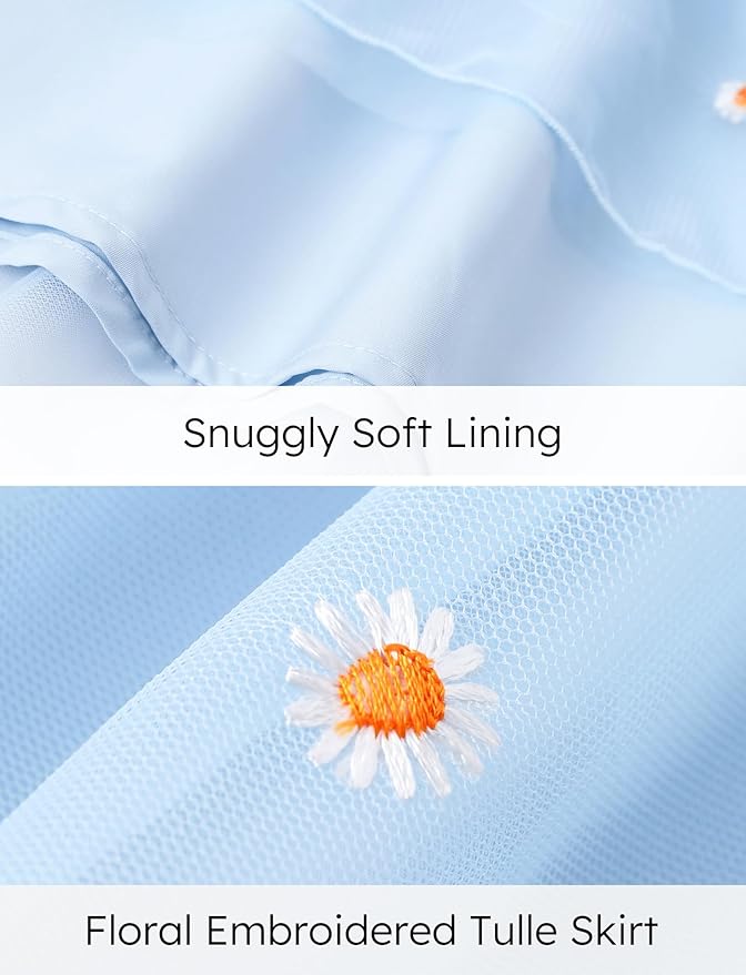 - Charming Design: This flutter-sleeve dress features a loose fit for comfort and practicality. The design showcases Anna and Elsa from Frozen under a vibrant rainbow, paired with a light blue tulle skirt adorned with delicate floral embroidery. With its fit-and-flare silhouette and soft, breathable fabric, it ensures all-day comfort for little girls