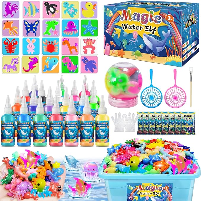 - ARTS & CRAFTS DIY TOY SET: The magic water fairy set is designed with bright and eye-catching colors, perfect for children to learn about colors. A variety of creature molds enhance cognitive skills through shape and color recognition. It not only stimulates children's creativity and immerses them in DIY activities, but also exercises children's thinking and hands-on skills.