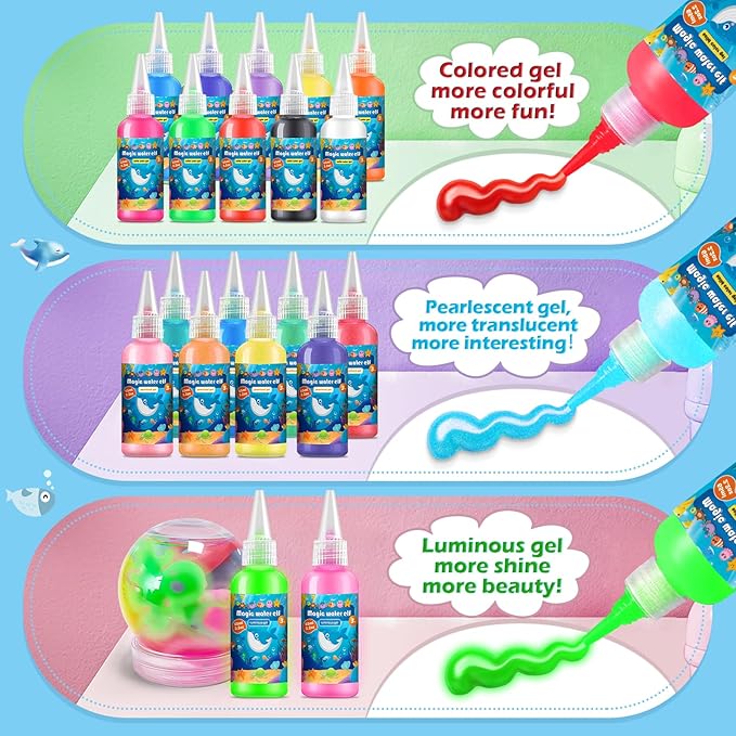 - QUALITY & SAFE MATERIALS: Our extraordinary magic gel is made of non-toxic and environmentally friendly resin and natural sodium alginate, not easy to break and fade, does not hurt your hands, non-toxic and harmless, so you and your kids can play with more peace of mind.