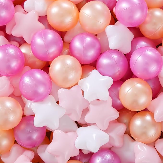 Ball Pit Balls and Stars, 100 200 500 Pieces Plastic Toy Balls for Kids Toddllers Baby Girls Ball Pits, Bounce House, Play Tent, Baby Pool Water Toys,Party Banner Props