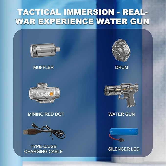 Electric Water Gun for Adults Kids, Automatic Squirt Watergun Pistol with Led Lights, Summer Outdoor Pool Beach Party Toys, Black