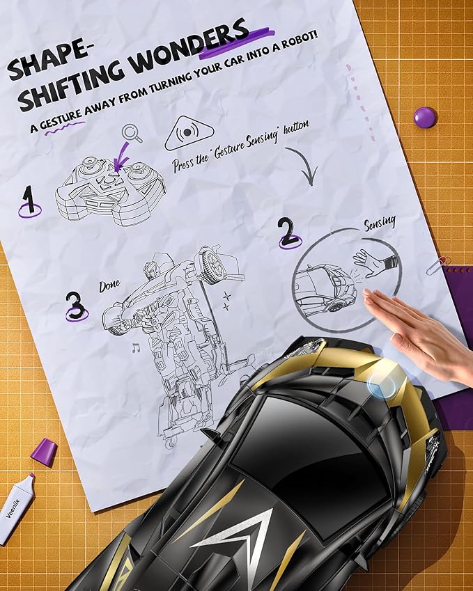 - 2-in-1 Transforming Design:Switch between a fast RC car and a cool robot with just one click—double the fun in one toy!