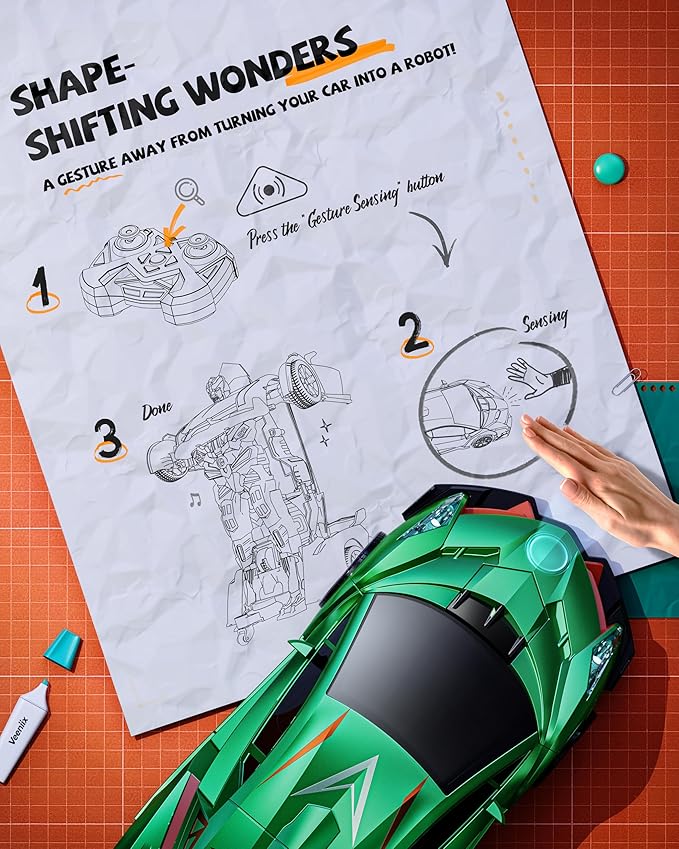 - ใ๐ ๐๐น๐๐ถ๐ฝ๐น๐ฎ๐๐ฒ๐ฟ ๐๐ผ๐ & ๐ฆ๐บ๐ฎ๐ฟ๐ ๐๐ป๐๐ฒ๐ฟ๐ฎ๐ฐ๐๐ถ๐ผ๐ปใRace and transform with friends! The 2.4GHz remote control allows multiple cars to play together without interference. Features like one-click transformation, gesture-sensing, and auto-demo modesโplus lively music and LED lightsโturn play into a social, interactive showdown!