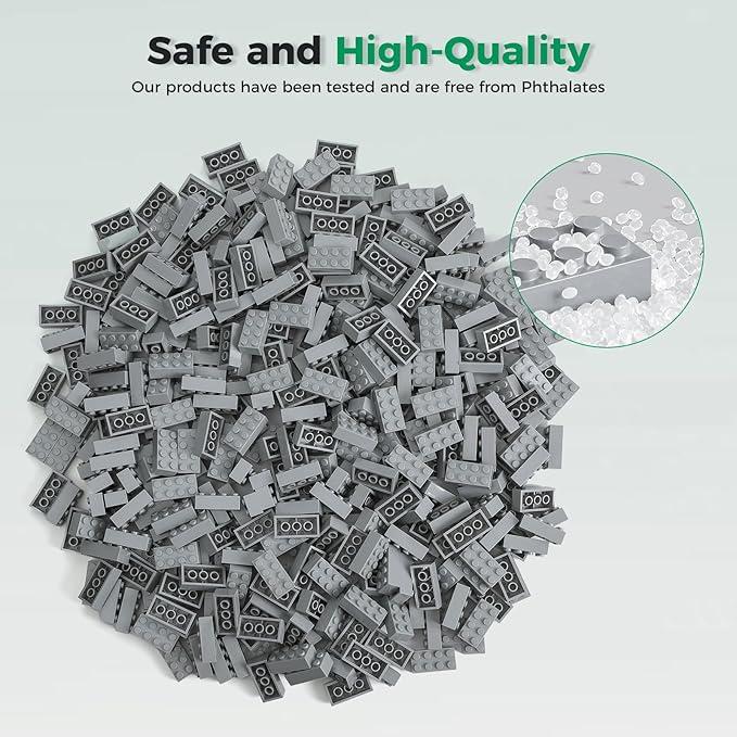 - Compatible with Major Brands: 2x4 building brick creative toys, A box contains 500 Blocks and 1 grey baseplate, 2 x 4 points, all light gray.