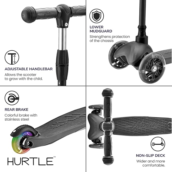 - FUN LED WHEEL LIGHTS - Brighten up every ride with LED wheels that light up as your child scoots around. The colorful lights not only entertain but also improve visibility, making this children’s scooter a hit with both kids and parents alike.
