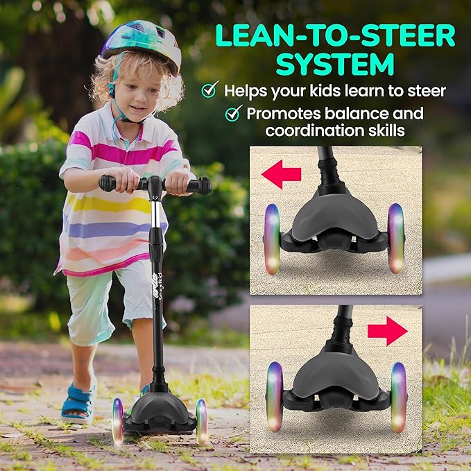 - SUPERIOR LEAN-TO-STEER CONTROL - Designed for beginner riders, the lean-to-steer technology allows smooth and easy maneuvering. Your child can confidently ride their 3-wheel scooter with enhanced stability and control, indoors or outdoors.