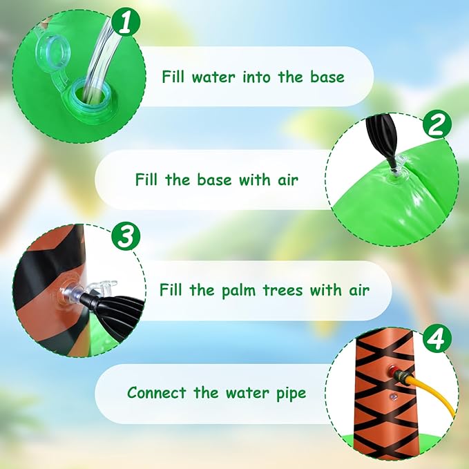 - Quick Setup, Instant Fun: Simply inflate the palm tree, connect to standard garden hose, and adjust water pressure for spray. No tools required—perfect for spontaneous summer play