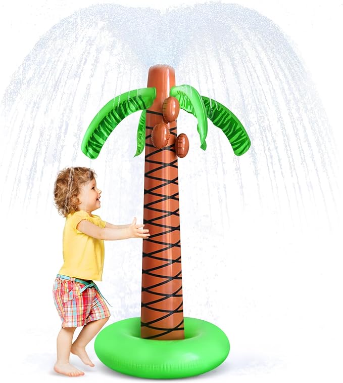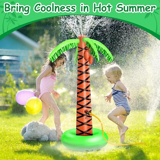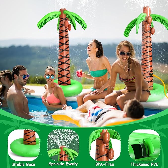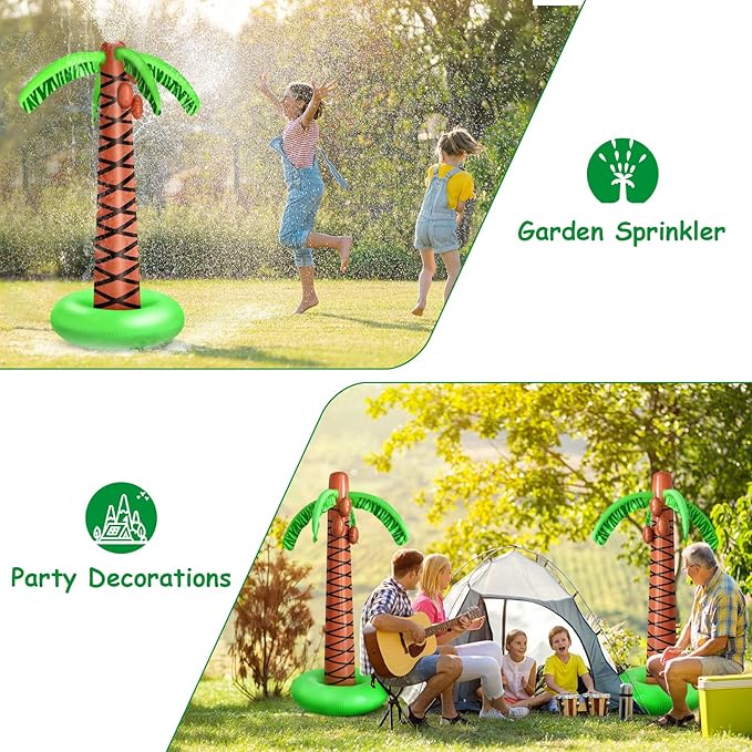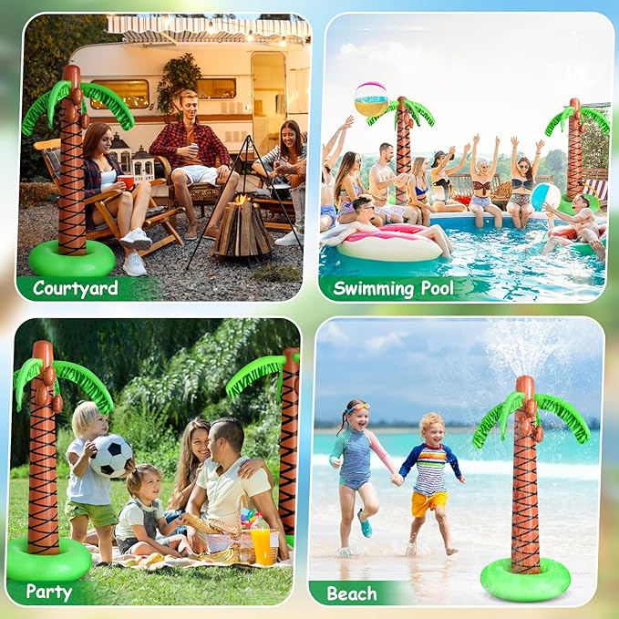 - Palm Tree in Minutes: Our 62-inch inflatable palm tree sprinkler creating a lush Hawaiian vibe! Water sprays from the top, turning your backyard into a refreshing splash zone for kids
