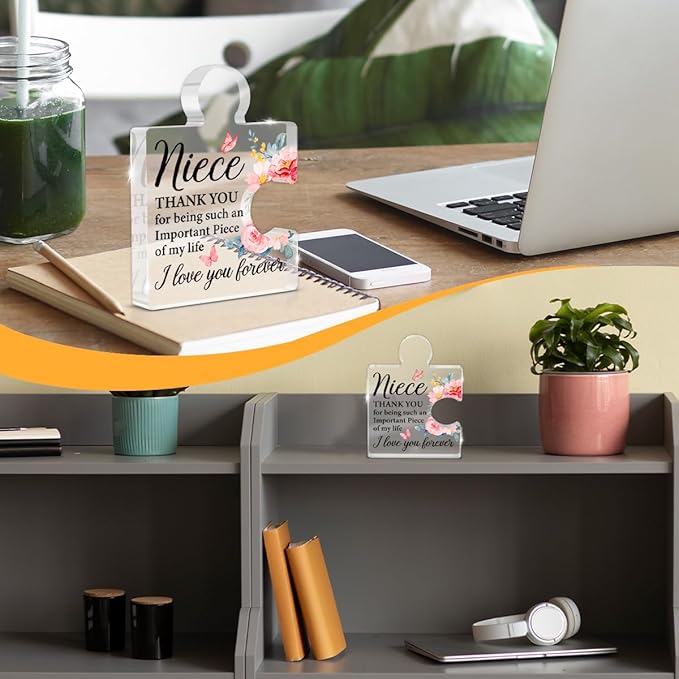 Niece Gifts from Auntie Uncle, Heartwarming Niece Gifts from Aunt Birthday Graduation Christmas Gift for Women Girls Acrylic Puzzle Piece Plaque Keepsake Desk Decorations for Home Decor