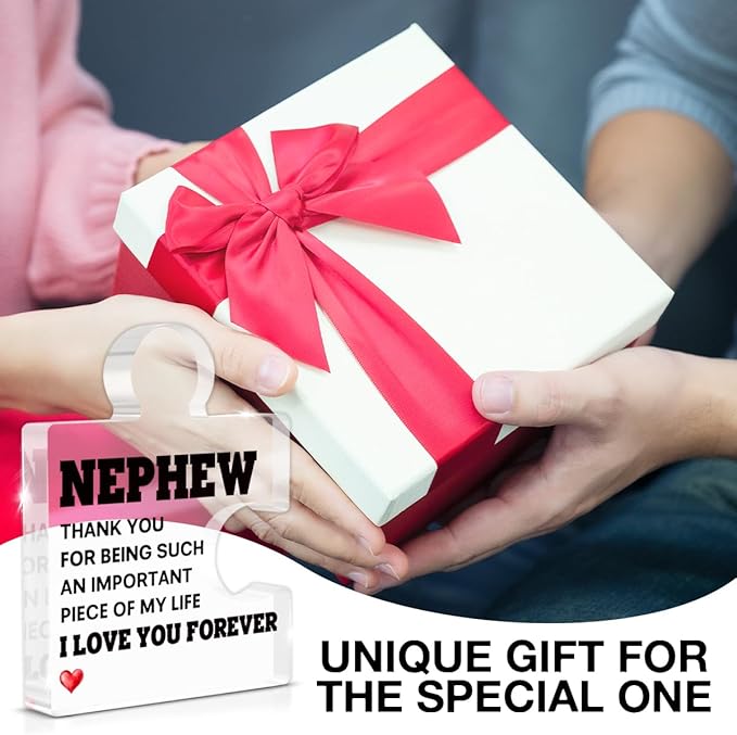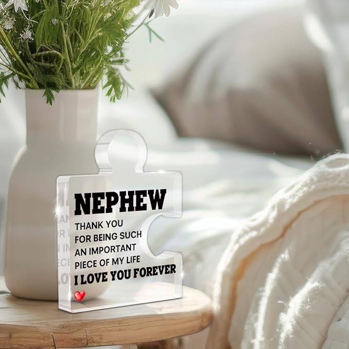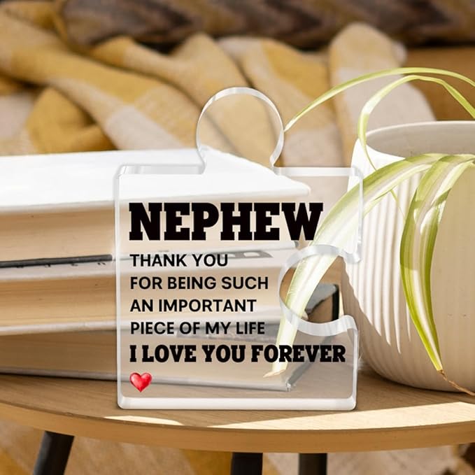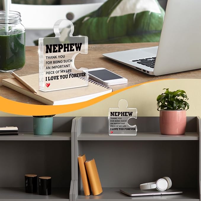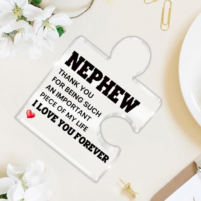 Nephew Gifts from Auntie Uncle, Heartwarming Nephew Gifts from Aunt Birthday Graduation Christmas Gift for Men Boys Acrylic Puzzle Piece Plaque Keepsake Desk Decorations for Home Decor