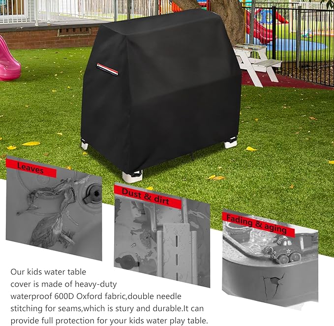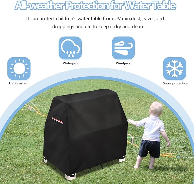 - Weatherproof and full protection:Our kids water table cover is made of heavy-duty waterproof 600D Oxford fabric,double needle stitching for seams,which is stury and durable.It can provide full protection for your kids water play table.It can protect kids water table from UV,rain,dust,leaves,bird droppings and etc to keep it dry and clean