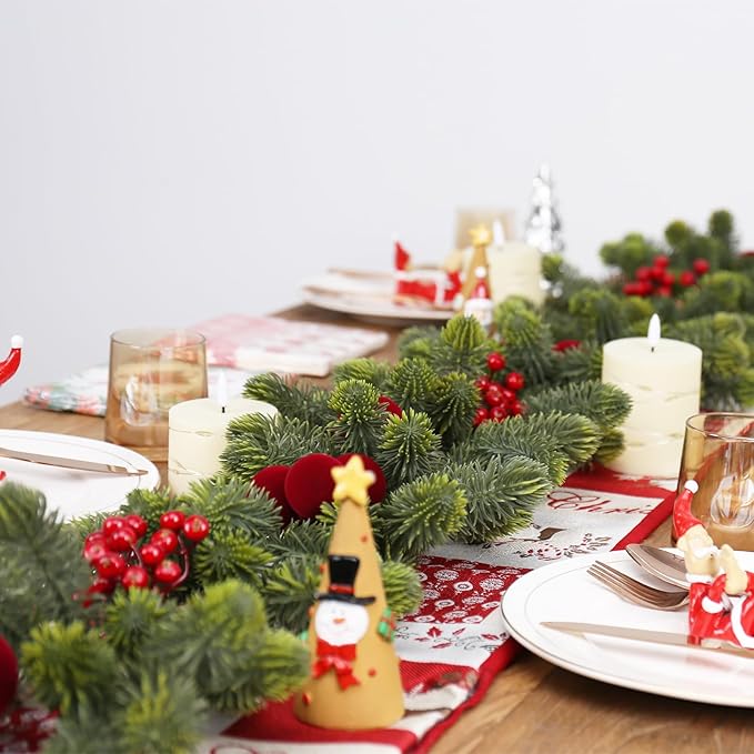 - CHRISTMAS GARLAND: This Christmas garland is made of artificial green plants, paired with Velvet balls and berries. It has a delicate appearance and can meet your personalized decoration needs, making it an important element of your Christmas decoration.