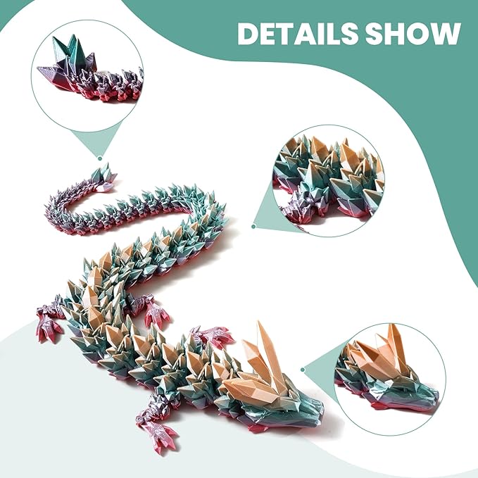 - Versatile, Fun, and Stress-Relieving: This dragon fidget toy is not just for display—it’s designed for imaginative play and relaxation. The dragon’s articulated joints allow for various poses, making it a fun desk companion or stress-reliever. Fidget with it while working or studying to spark your creativity. Its eye-catching size makes it the perfect addition to any desk or space, adding imaginative and inspirational. (Package Included: 1 * 30-inch 3D printed dragon )