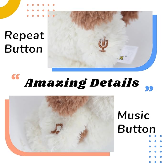 - MULTI-FUNCTIONAL TOY: Still buy some boring stuffed animals or dolls for your little one? Why not try this multi-functional puppy? would quickly respond you at most 2 seconds of stopping talk. Meanwhile, our toy has the another function, it can play 3 songs and keep walking while the other button is pressed. Press the button on the hand, it will repeat. Press the button on the foot, it will sing.