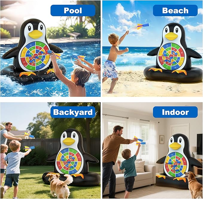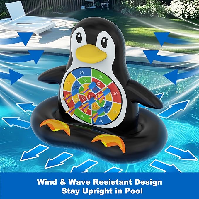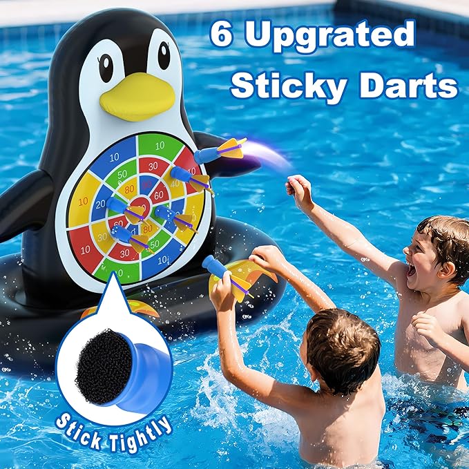 - Fun Penguin Dart Pool Game: Adorable Penguin-shaped dart board pool floats with sticky darts for endless fun! Enhances hand-eye coordination, focus, and physical activity—perfect for kids summer adventures