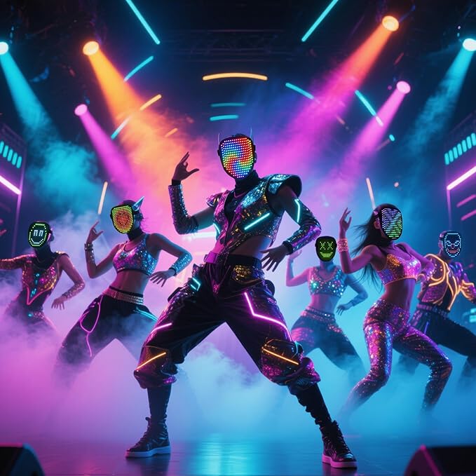 arscniek LED Face Mask with Gesture Control – Rechargeable Light Up Halloween Masks Costume for Adults & Kids, Glowing Transformable Cosplay Mask for Parties, Christmas, Concerts