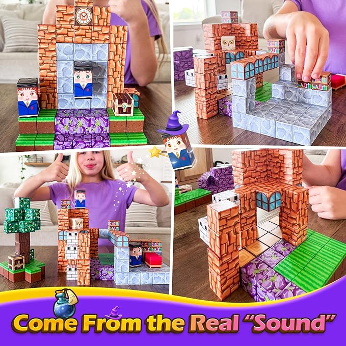 - 【Building brilliance block by blocks】Watch as your boy&girl’s logic skills and imagination flourish while they’re constructing an ancient library under starlit towers, connecting it to a dinosaur jungle, or bridging it to a sparkling ice kingdom. Each block encourages STEM learning, role play, and construction skills, while the high-quality, scratch-resistant magnets for kids ensure sturdy builds every time