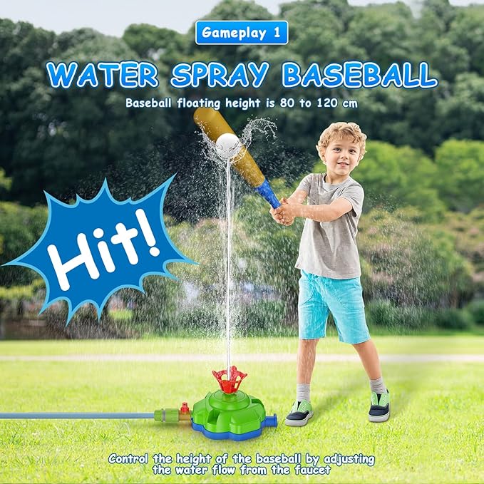 - 【Water Spray Baseball】 Sprinkler toys combine water play with baseball training, providing hours of entertainment for kids. Water Baseball toy's Launcher launches one water balls at a time up to 80-120cm in heights! The water sprinklers baseball playset is an ideal outside toys for toddlers 3-5 on summer day, perfect for lawn, kiddie pool, park and backyard entertaining outside activities party and enjoying outdoor games for kids ages 4-8.