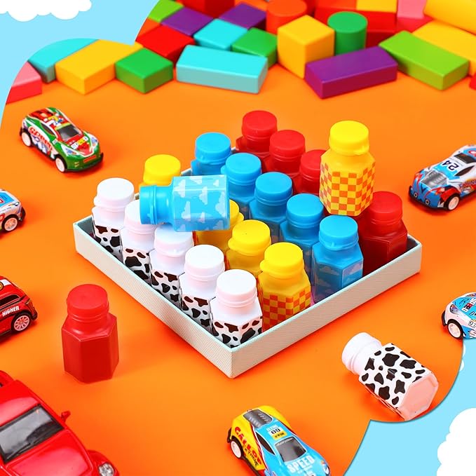 - Fun Cartoon Party Favors Kit: make your cartoon themed party truly enchanting with our captivating cartoon bubble party favors; It comes with 24 cartoon theme mini bubble wands for people; It has 4 colors (red, white, yellow, blue), cartoon elements design; Each bubble is the same size and the capacity is 35 ml