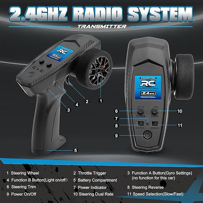 - Equipped with front and rear differentials and metal drive shafts, the car uses strong PA materials and a reinforced design for better impact resistance. Durable tires and a collision-resistant structure make it ideal for beginners.