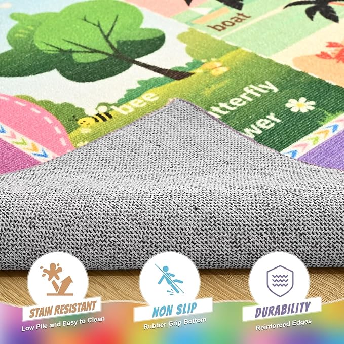 - Built to Last and Safe: Made from 100% polyester with a non-slip rubber backing, this rug is tough enough to handle daily play. It stays put on the floor, providing a safe and secure spot for kids to enjoy their activities without slipping around