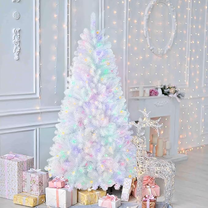 SHareconn 7.5ft Prelit Premium Artificial Classic Spruce Christmas Tree, 370 Warm White & Color LED Changing Lights, 1170 Branch Tips, Perfect Choice for Xmas Decoration,7.5 FT, White