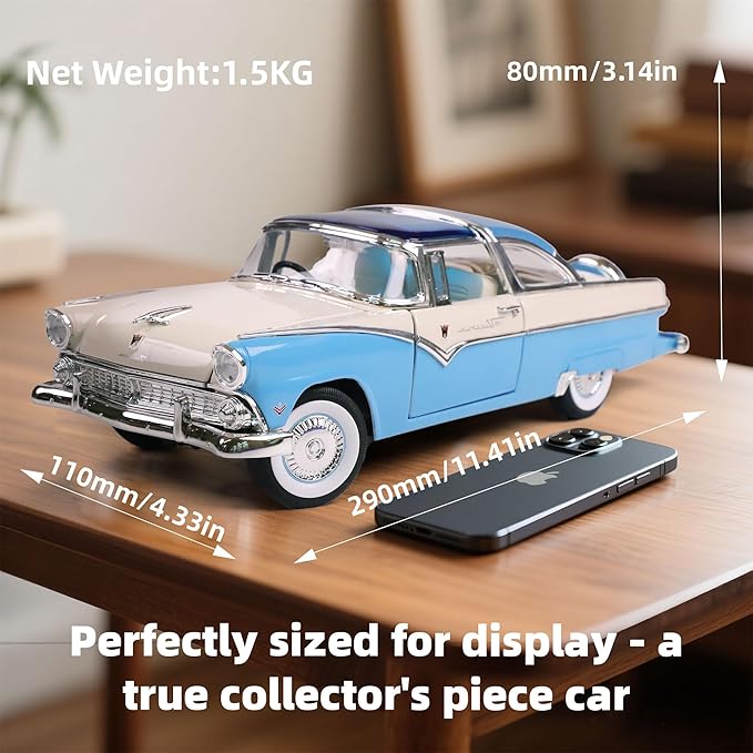1955 Ford Crown Victoria 1/18 Scale Die-Cast Metal Model Premium Classic Vintage Alloy Cars with Display Case, with Opening Doors, Best Gift for Men, Dad & Kids 14+ Years (Blue)