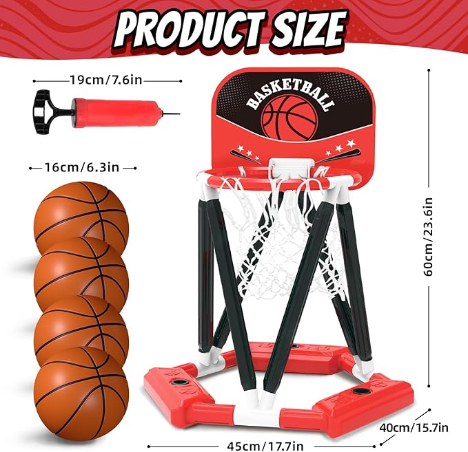 Pool Basketball Hoop Toys, Floating Basketball Hoop Pool Game with 4 Basketballs, Swimming Floats Toys with Balls Pump, Summer Outdoor Pool Water Play Toy for Kids and Adults (Red)