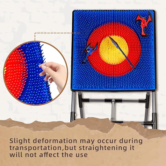 - DURABLE CONSTRUCTION:The target stands 44 inches high and provides a challenging and realistic experience for axe throwing enthusiasts.The 18“ x 18” plastic bristle bullseye ensures the most realistic scoring possible.