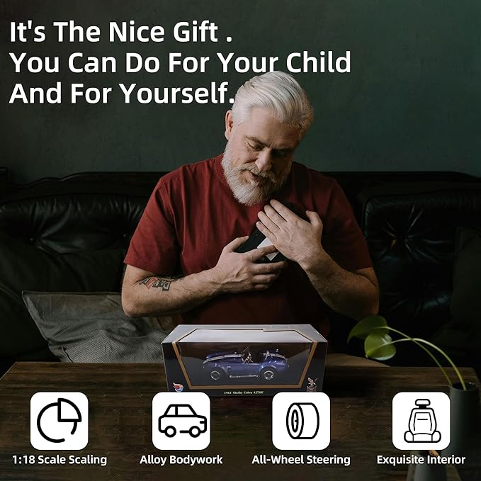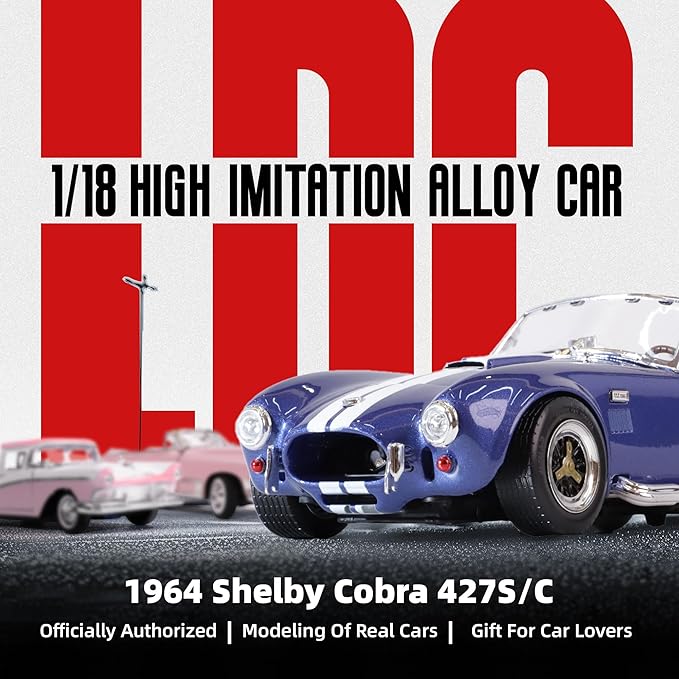 - 【Legendary 427 S/C Collection Cars & Collector's Piece】 This 1:18 scale diecast model authentically recreates Shelby's iconic 1964 Cobra 427 S/C Features the distinctive flared fenders, side-exit exhausts, and correct racing livery that made this the most fearsome American sports car of its era - both as a premium collectible and exciting Collection car for kids 14+.
