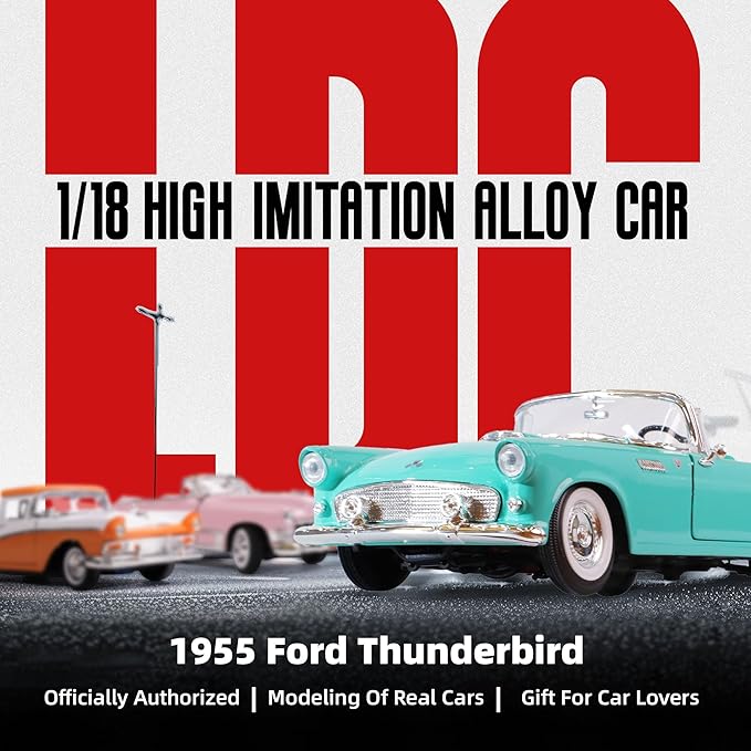 - Officially Licensed Premium Replica This authentic 1:18 scale die-cast model is officially licensed by Ford, meticulously recreating the iconic 1955 Thunderbird with working doors, detailed interior, and signature chrome accents. Perfect for collectors and Ford enthusiasts.